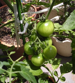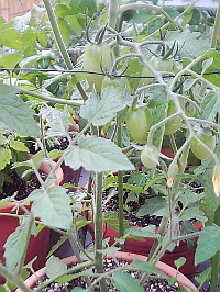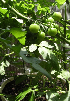 ベランダ栽培で、ミニトマトとバジル