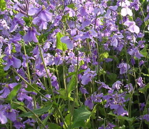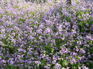 そのフェンスの中に一面に紫色のカワイイショカッサイ(ムラサキハナナ・花だいこん)