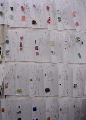 ←デザイナー先生のデスクの横の壁に貼られたコレクション用のデザイン画