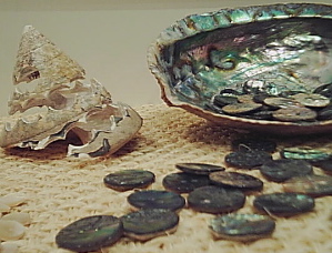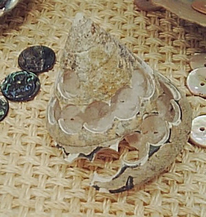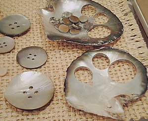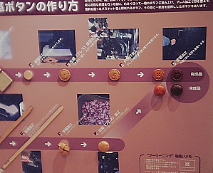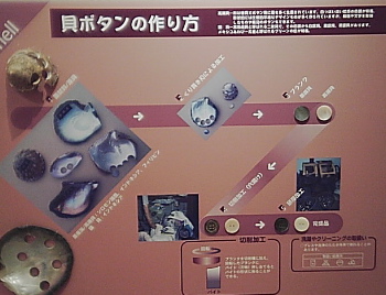 面白かったのは、貝ボタンの作り方の説明とその過程段階の貝が展示されていて、