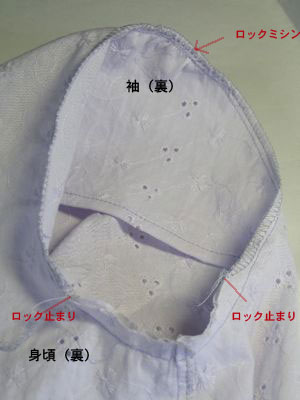【5】袖が付いている部分にロックミシンをかける。