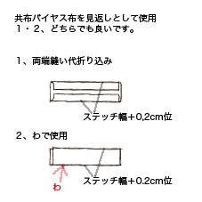 【2】バイヤス布端は、1.0cm折っておく。
